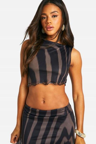 Boohoo LC33312 Boohoo Aszimmetrikus Csíkos Hálós Felső M