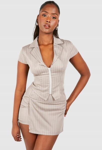 Boohoo LC82208 Boohoo Csíkos Cipzáras Blézer Felső Xs