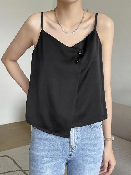 Dazy EC14310 Dazy Aszimmetrikus Felső Vállpántokkal Gombokkal S
