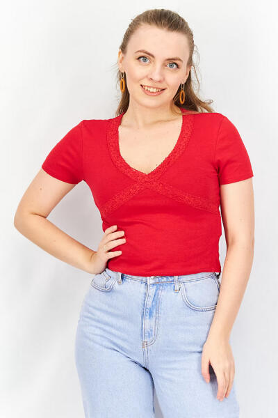 Jennyfer HC62314 Jennyfer Piros Felső Nyakkivágás V Csipke Rövid Ujjú L