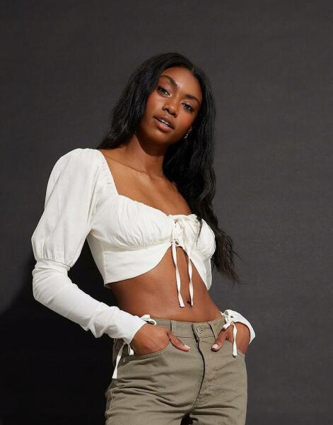 NA-KD Fehér Crop Top Kötött Rövid Fodros Hosszú Ujjú Na-kd 36