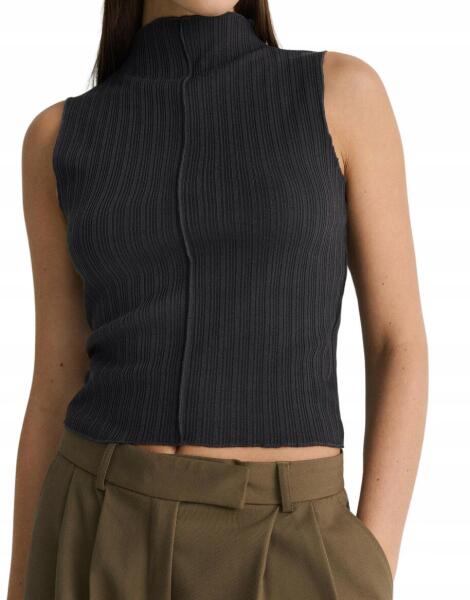 Reserved LC72320 Bordázott Ujjatlan Felső Állógallér Fekete M