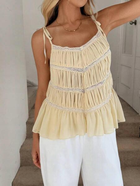 Shein LC93121 Shein Vállpántos Felső Fodros Csipkével (42) M